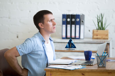 Muchos problemas de espalda provienen también del sedentarismo, al estar sentados en mala postura repetitivamente, permanecer sentados largos tiempos con las piernas cruzadas a nivel de la rodilla, permanecer sentados con el cuello flexionado demasiado hacia delante al estar frente a un teléfono o dispositivo móvil.